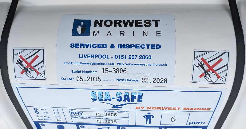 - Sea-Safe . . . . . 6 man Liferaft (canister 30″x 21″x 13″)