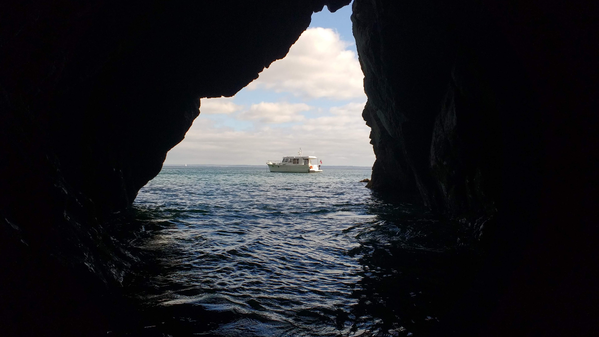 Anchored to explore Morgat Marine Caves